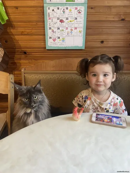 Воспитатель из группы «Капельки» Леонтьева Т.Н. и ее внучка тоже решили стать участниками челленджа. Они делятся фотографиями своей любимицы Василисы, породы Мен-кун. Их 2-х летняя кошка очень умная, дружелюбная, хорошо общается с людьми, любит играть. Она прекрасно уживается с другими домашними питомцами!