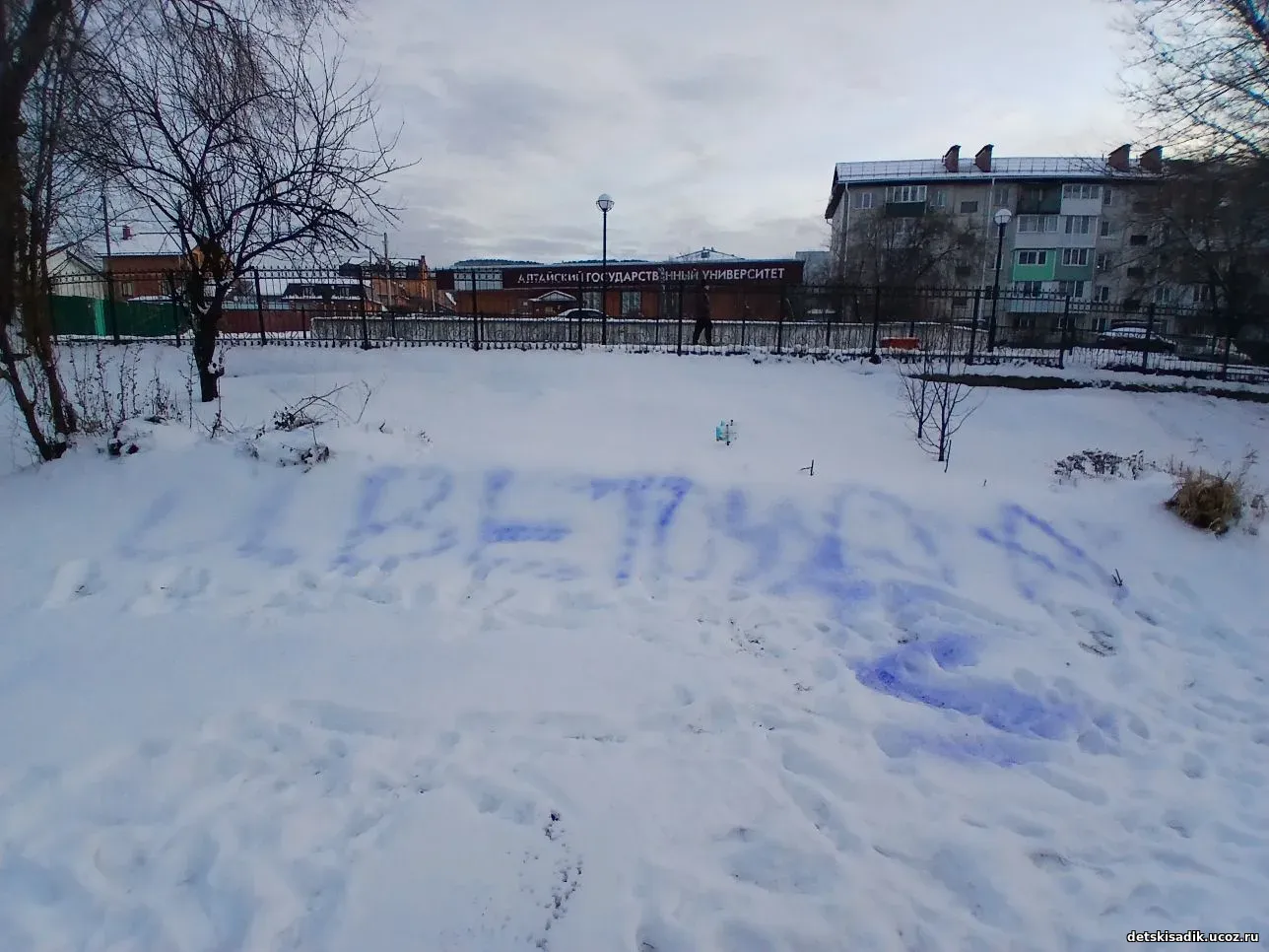 В подготовительной группе "Цветочки" ребята устроили необычное творчество — рисовали гуашью прямо на снегу.