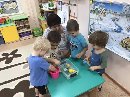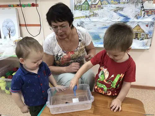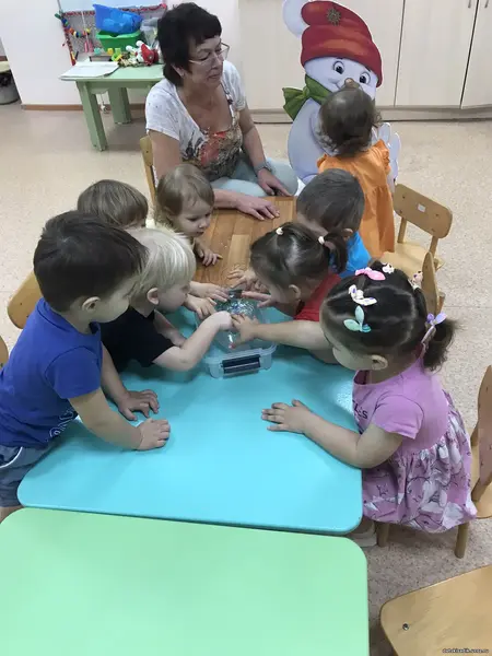 Педагог Попова М.Г. показала малышам настольный театр по сказке Т. Кирюшатовой «Эля и первый снег». Воспитатель Леонтьева Т.Н. организовала с детьми игры, такие как «Замороженные сокровища» и «Тонет — не тонет».