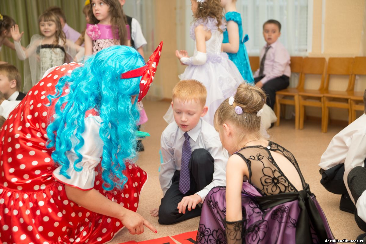 Мальвина, пришедшая на праздник, попросила выпускников и принцессу составить из слогов слова, разгадать загадки, логические примеры. Принцесса, конечно, ничего не смогла сделать, а ребята справились. Шапокляк приготовила детям плохие советы: рогатку, чтобы стрелять камнем в окна, класть кнопку на стул учителю, предлагала палку, которой можно драться с учениками и др.